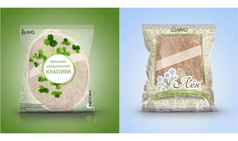 Упаковка для серии натуральных мочалок фирмы Ева